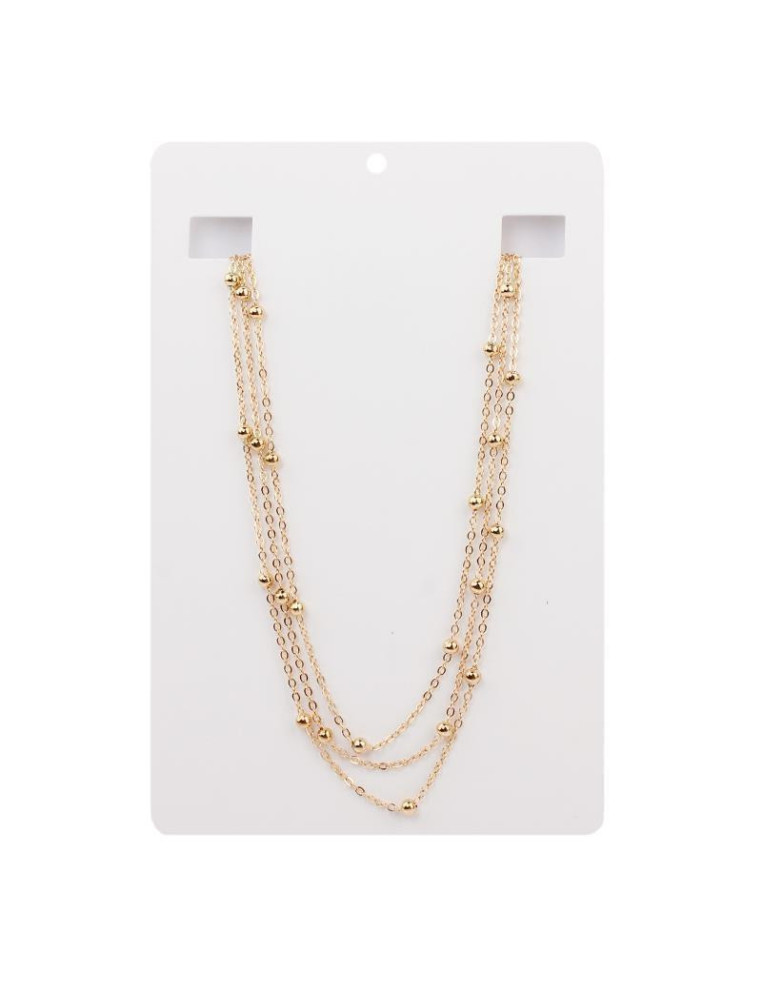 Collar corto de triple caída de cadena diferenciada dorada. Cierre con mosquetón y largo ajustable con cadena de enganche.