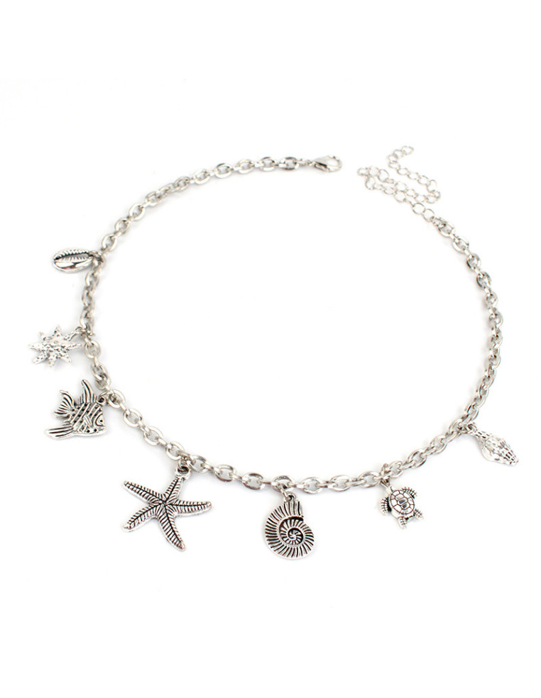 Collar multidije de cadena diferenciada con dijes exclusivos de fundición marinos combinados.