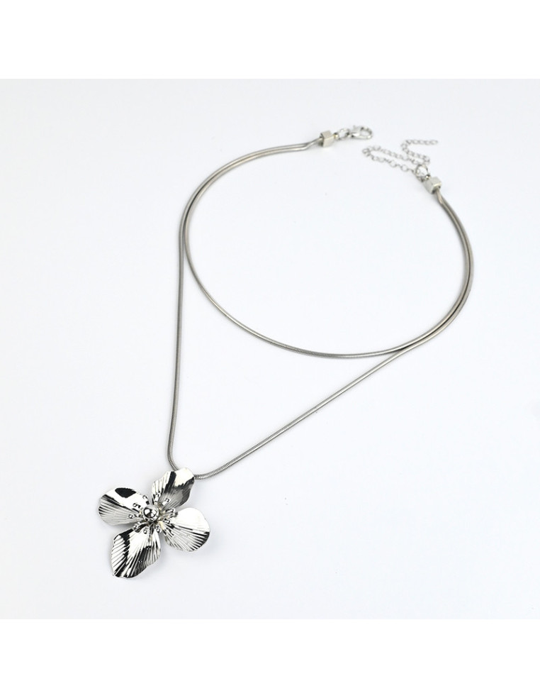 Collar de doble caída de cadenas diferenciadas con dije exclusivo con forma de flor.