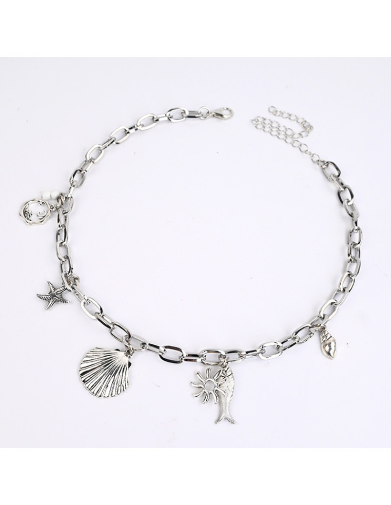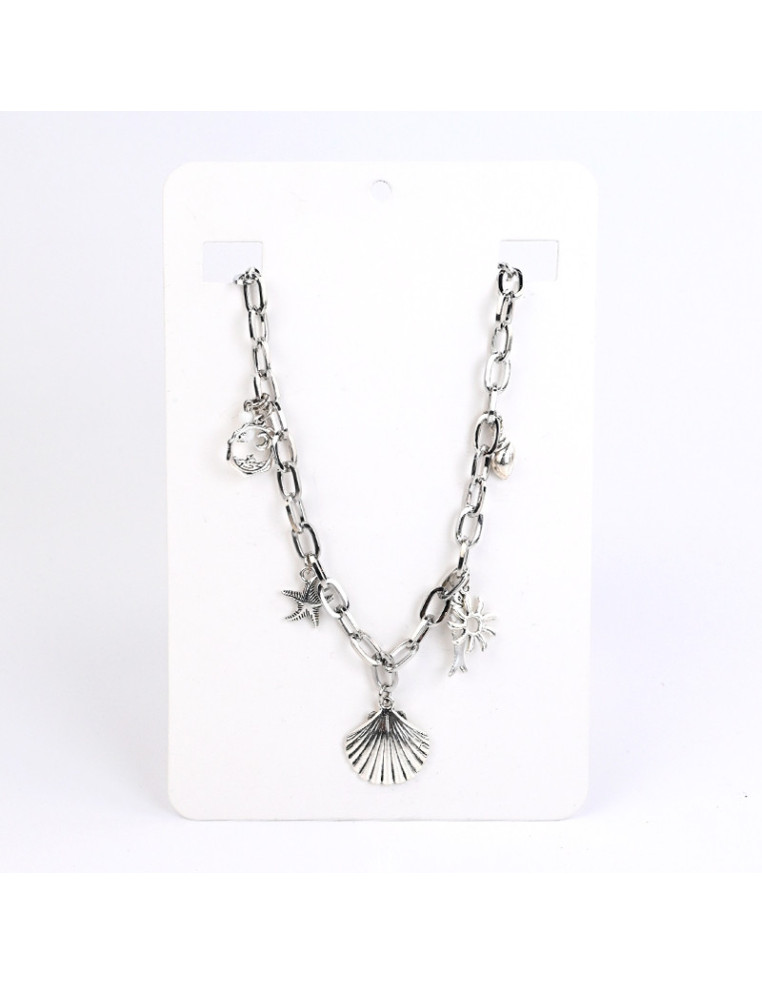 Collar multicharms de cadena diferenciada con dijes exclusivos de fundición marinos pintados a mano. Medidas: 35cm de largo, diámetro ajustable con cadena de enganche de 10cm.