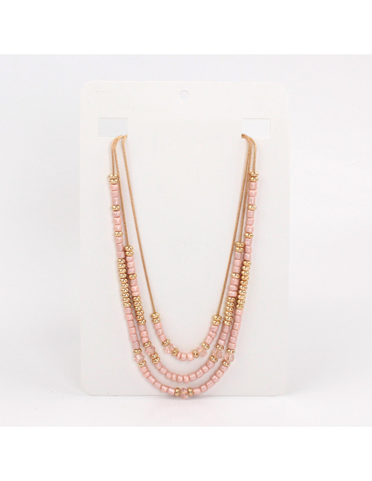 Collar de triple caída de cadenas diferenciadas, intervenidas con mostacillas, rocas de cristal y piezas pasantes de CCB.