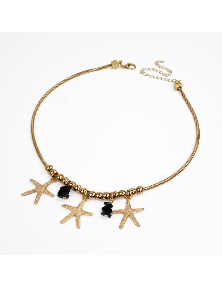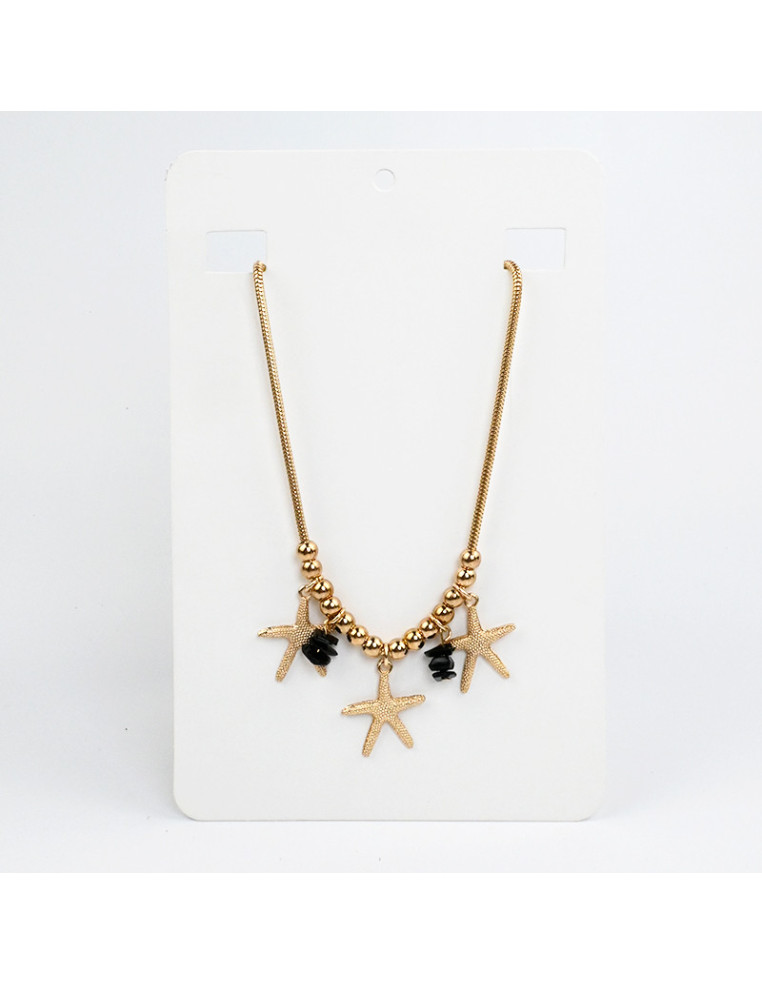 Collar de cadena diferenciada, enhebrada con bolitas pasantes de CCB, dijes exclusivos de fundición y escallas de acrílico.