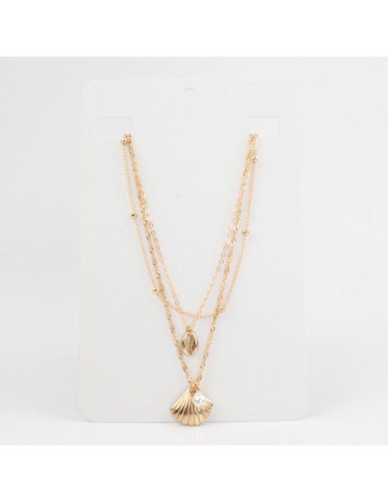 Collar de triple caída de cadenas diferenciadas, con dijes exclusivos de fundición marinos y perla símil río.