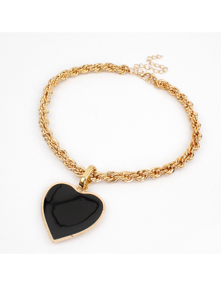 Collar trendy de cadena de diseño, con dije exclusivo de fundición boho pintado a mano con forma de corazón.