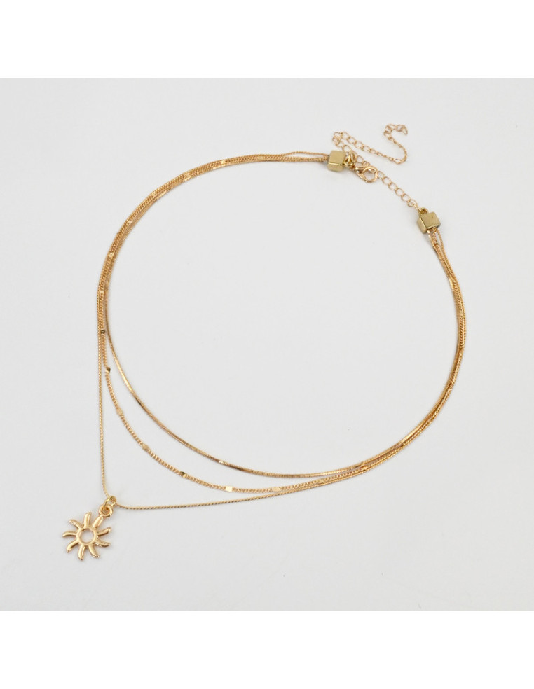 Collar de triple caída de cadenas diferenciadas, con dije exclusivo de fundición con forma de sol.