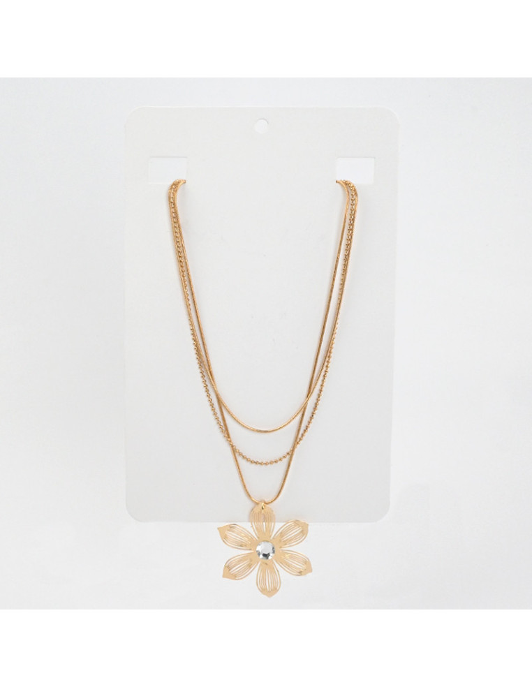 Collar de triple caída de cadenas diferenciadas, con pieza de metal con forma de flor filigranada.
