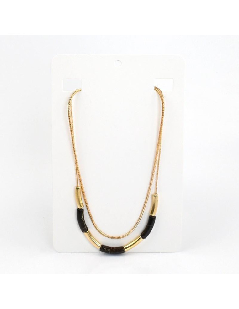 Collar de doble caída de cadenas diferenciadas, una de ellas enhebrada con piezas de acrílico marmoladas exclusivas y piezas de CCB.