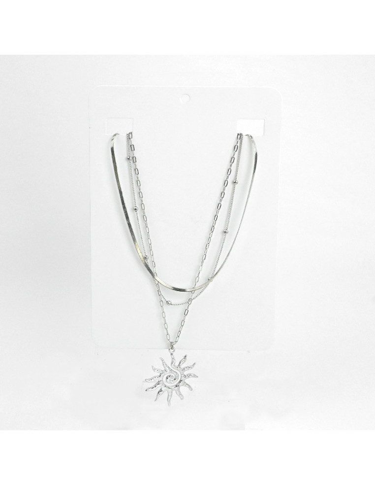Collar de triple caída de cadenas diferenciadas, con dije exclusivo de fundición con forma de sol.