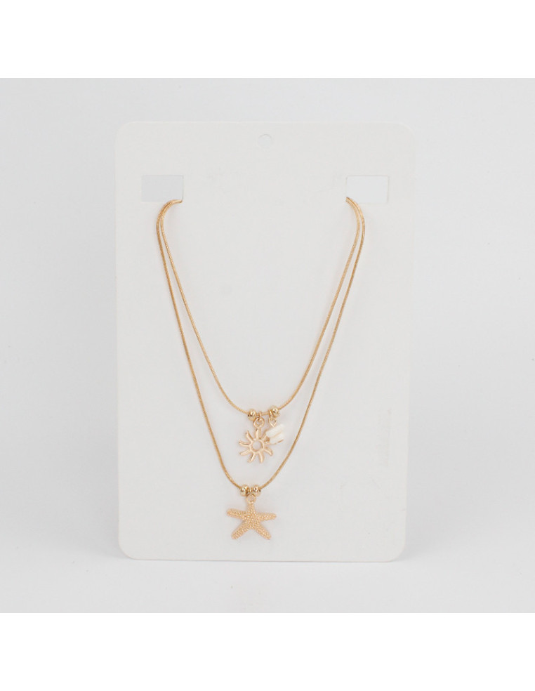 Collar de doble cadena con dijes marinos de fundición y escallas de acrílico.