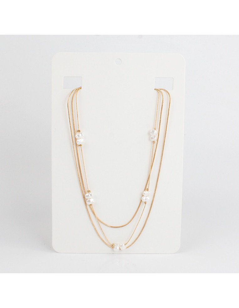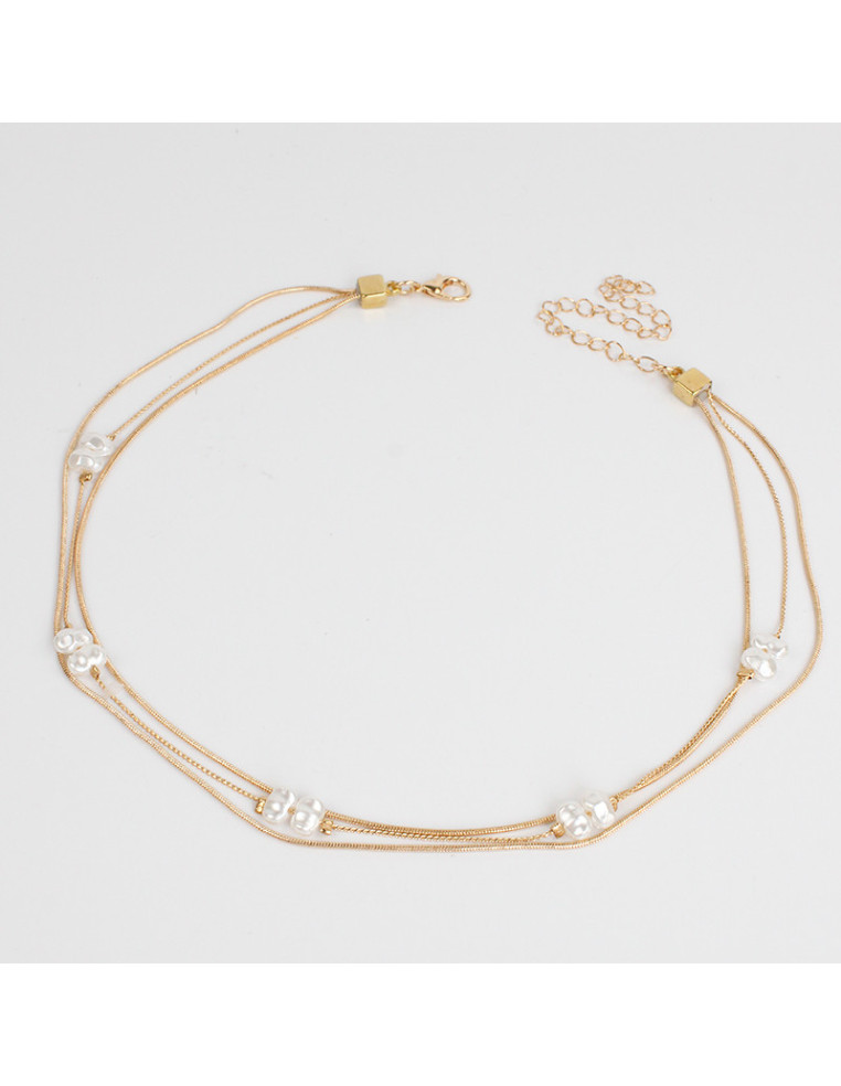 Collar de triple cadenas, con perlas simil rio.