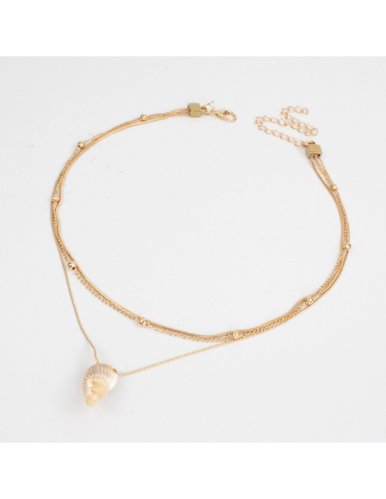 Collar de tres cadenas de diseños diferentes, con caracol natural.
