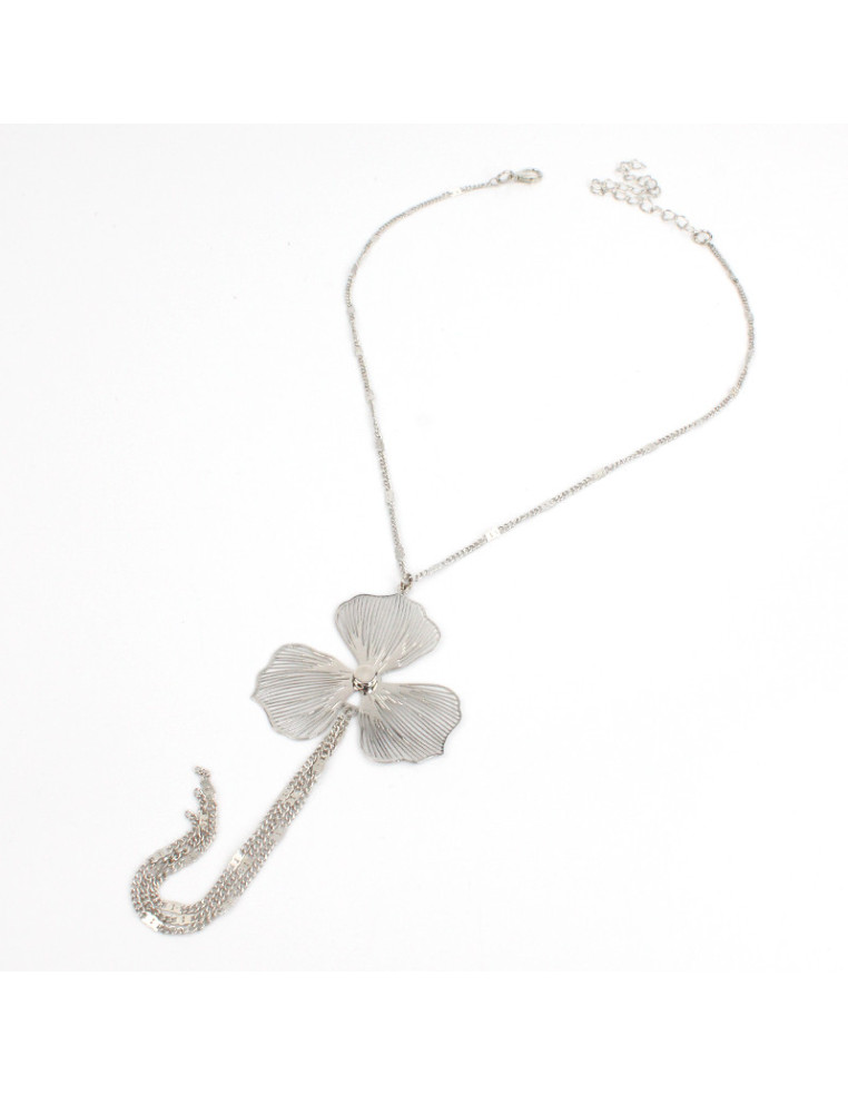 Collar de cadena con dije metálico de flor fliligrana.