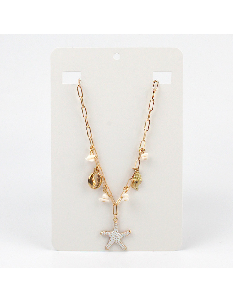 Collar multicharms de cadena con dijes de fundición marinos de distintas formas y tamaños. Medida: 36cm de largo ajustable con cadena de enganche de 10cm.