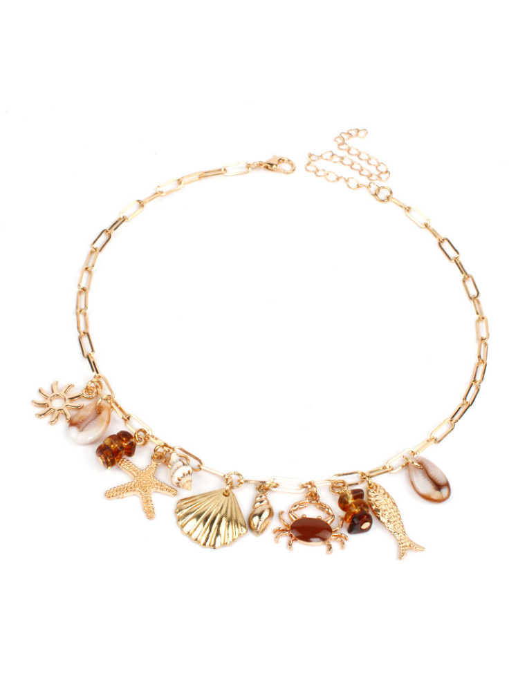 Collar multidije de cadena con múltiples charms de diseño marino.
