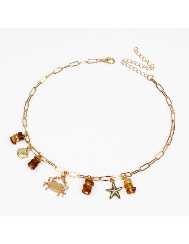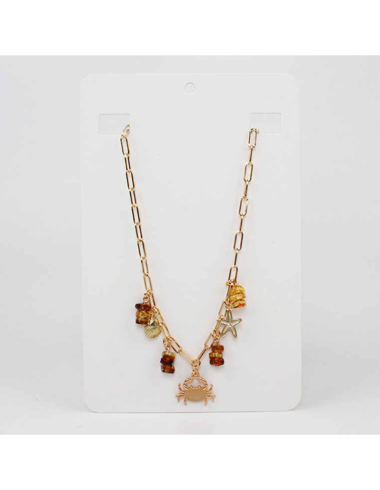 Collar multidije de cadena, con dijes marinos y escallas de acrílicos.