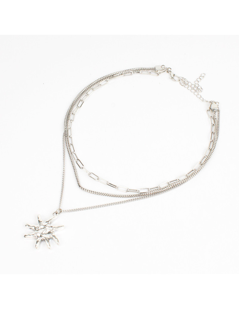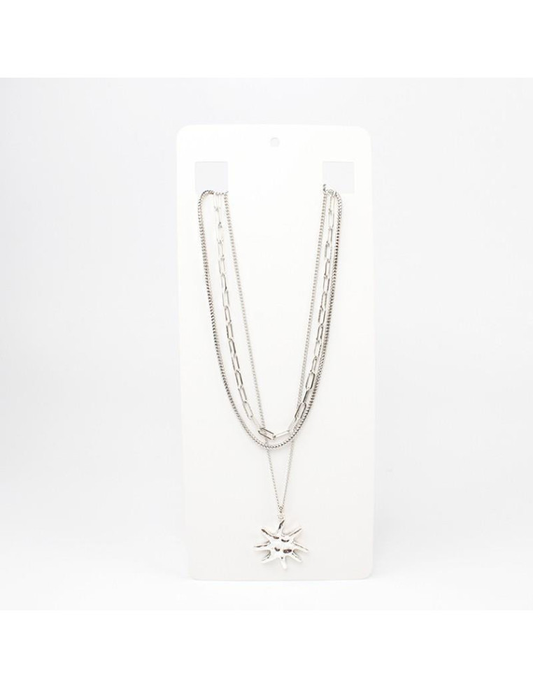 Collar de múltiples cadenas con dije de fundición boho con forma de sol martillado.