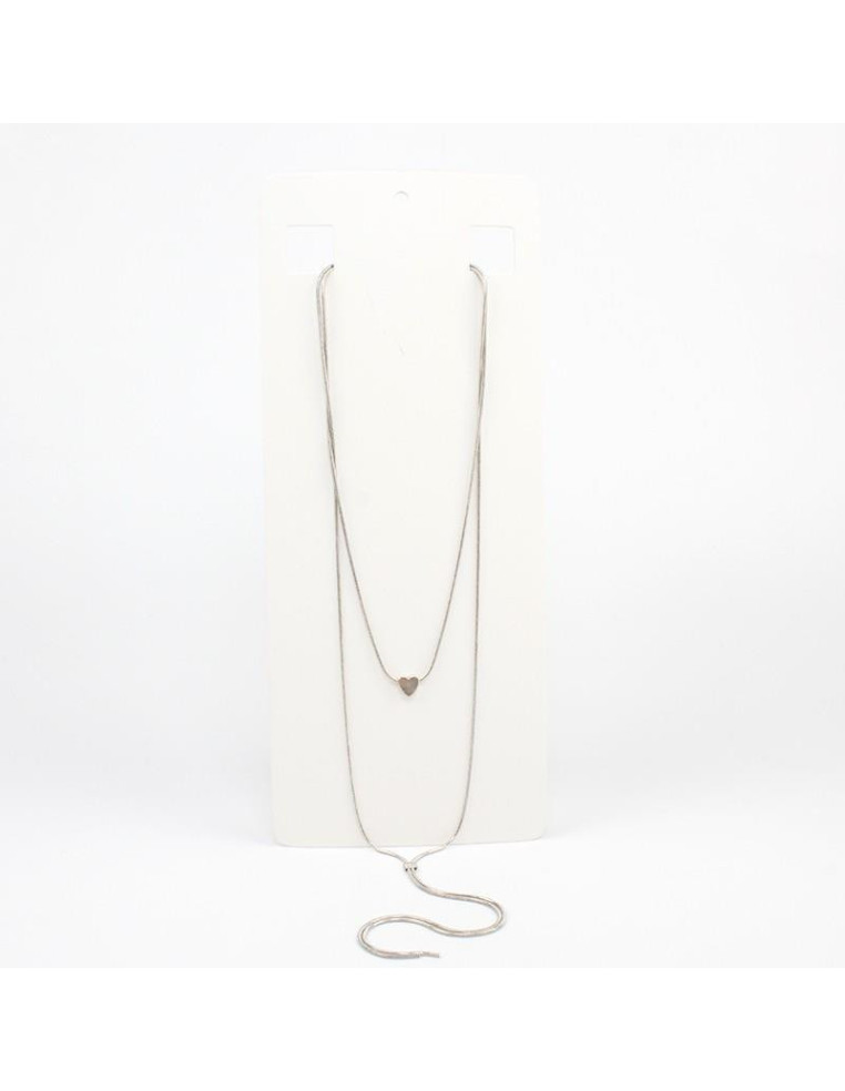 Collar corbatero de cadenas, con dije de fundición pasante con forma de corazón. Medidas: 37cm y 52cm de largo, ajustable con cadena de enganche de 10cm.