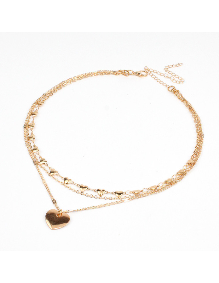 Collar de cadenas doradas de diseño con eslabones en forma de corazón y dije de fundición.