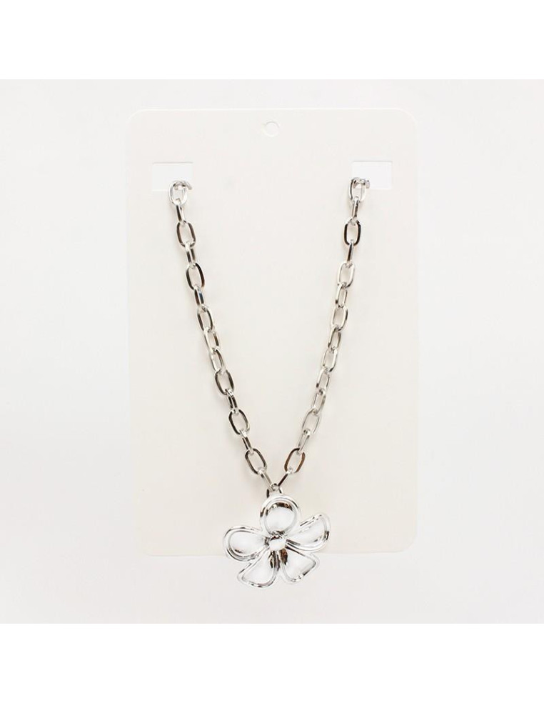 Collar de cadena, con dije de CCB níquel con forma de flor.
