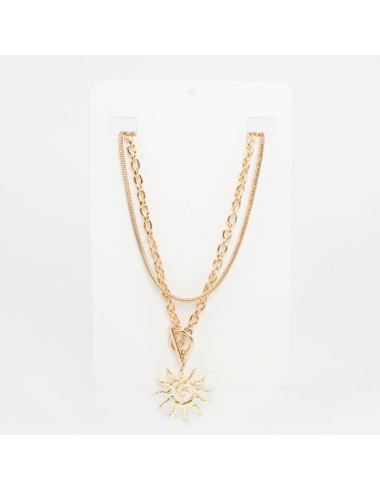 Set de dos collares de cadenas de diseño, con dije de fundición con forma de sol.