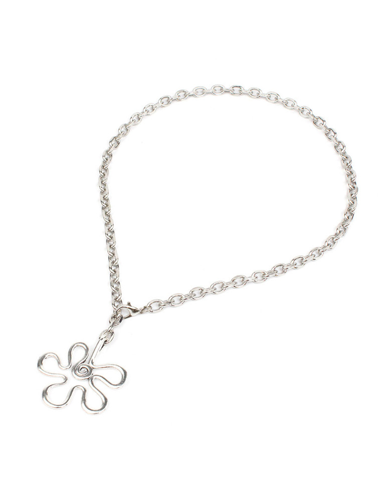 Collar de cadena con dije de fundición con forma de flor. Medida: 46cm de largo y cierre con mosquetón.