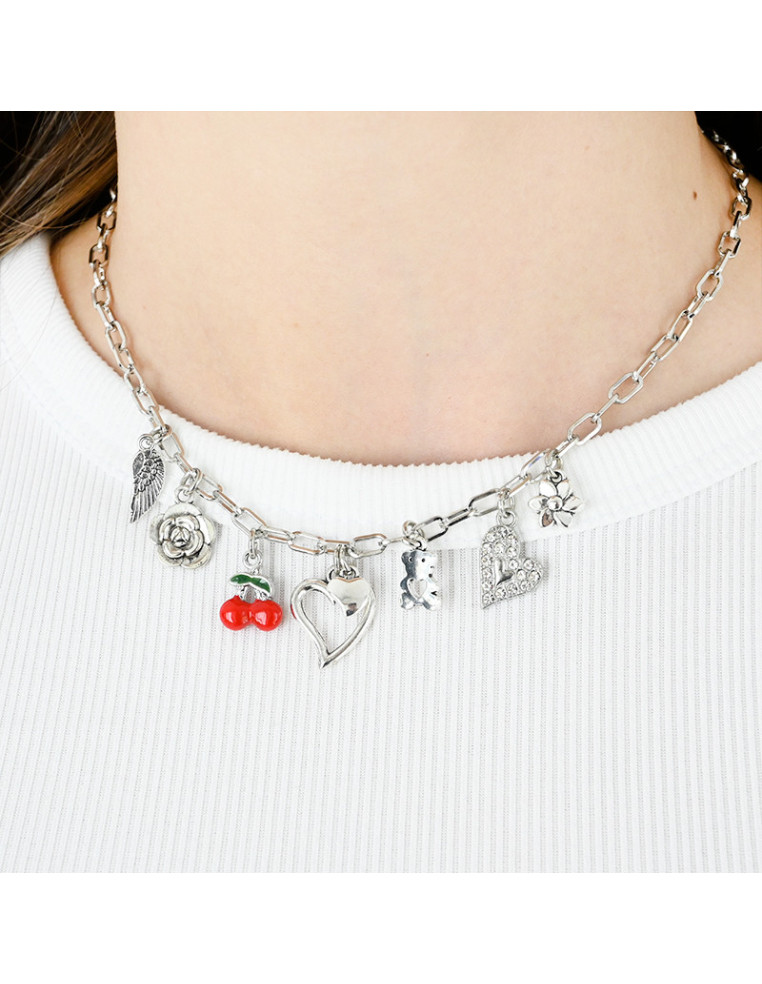 Collar multidijes de cadena con charms de distintas formas y tamaños.