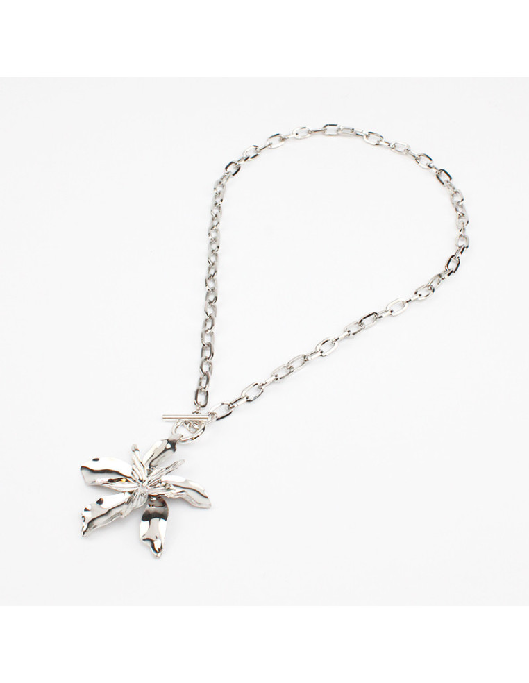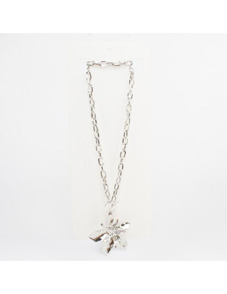 Collar de cadena, con dije de metal con forma de flor.
