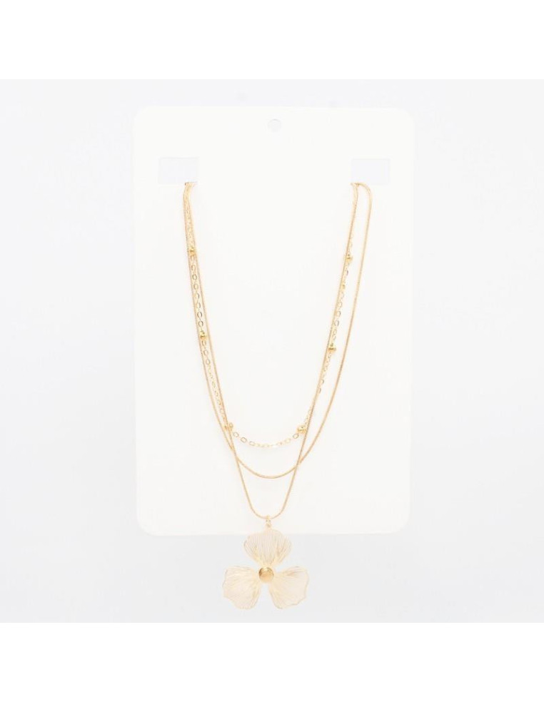 Collar de cadenas, con dije de metal con forma de flor filigrana.