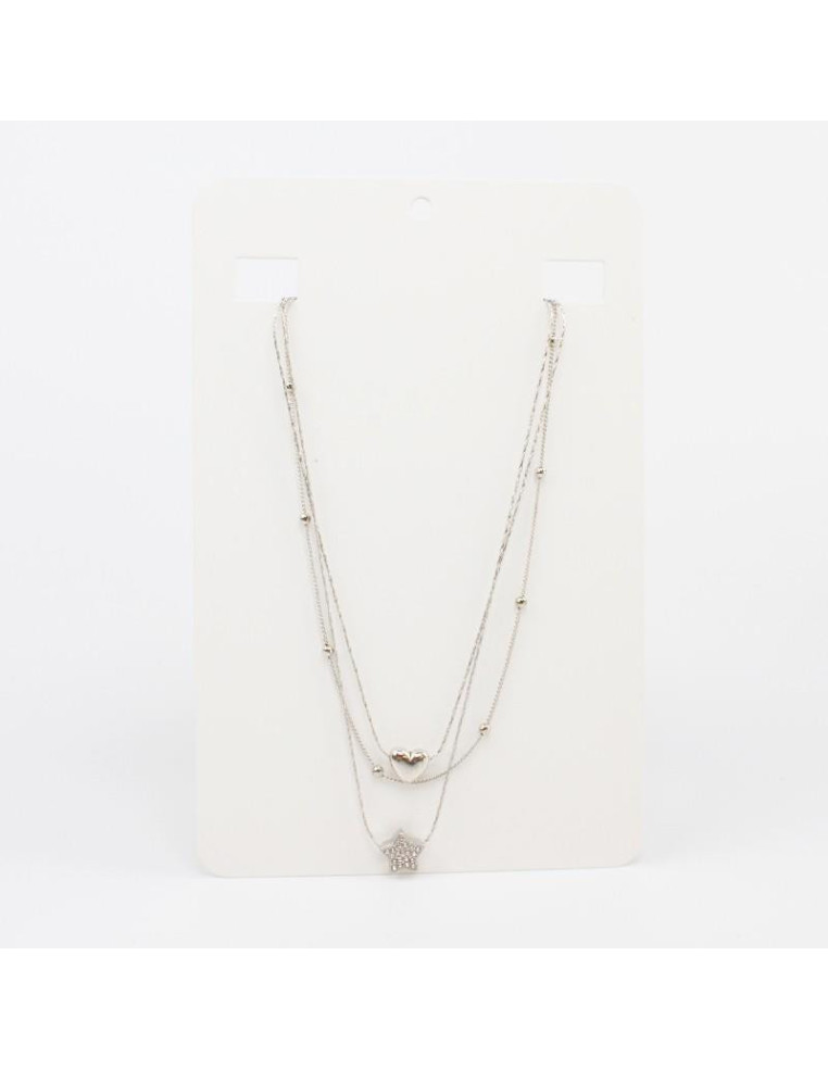 Collar de triple caída de cadenas, con dijes de fundición y strass.