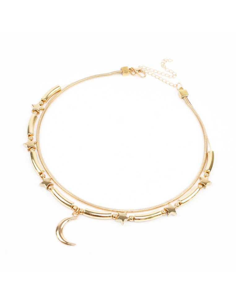 Collar de doble cadena con dijes y piezas pasantes de CCB dorados.