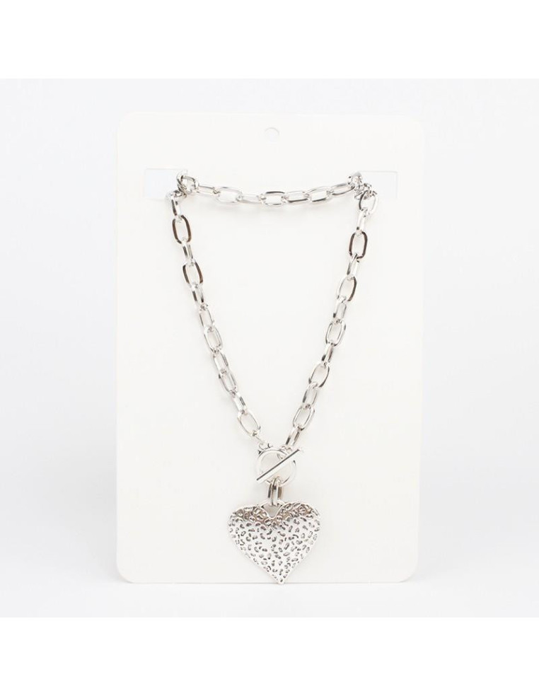 Collar de cadenas con dije de fundición con forma de corazón y cierre marinero.Medida: 43cm de largo.