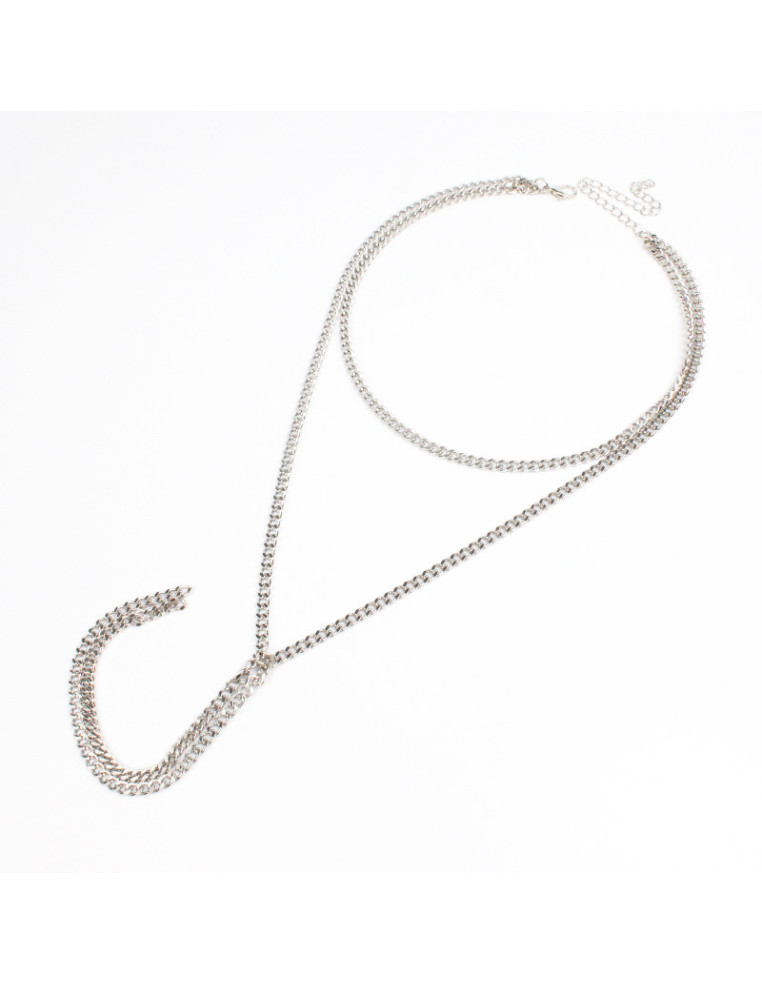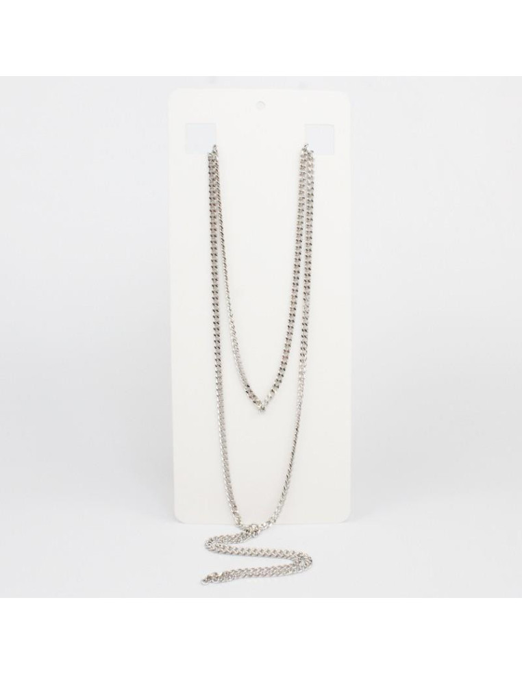 Collar corbatero de cadenas níquel.Medidas: 36cm y 50cm de largo, ajustable con cadena de enganche de 10cm.