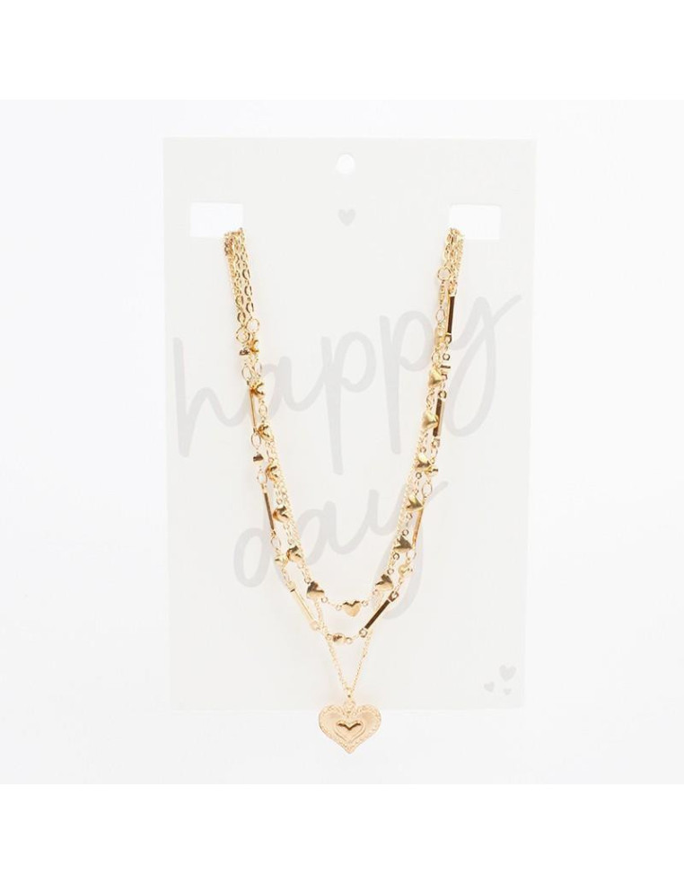 Collar de triple cadena, con eslabones en forma de corazón y dije de fundición. Medida: 37cm, 39cm y 40cm de largo, ajustable con cadena de enganche de 10cm.