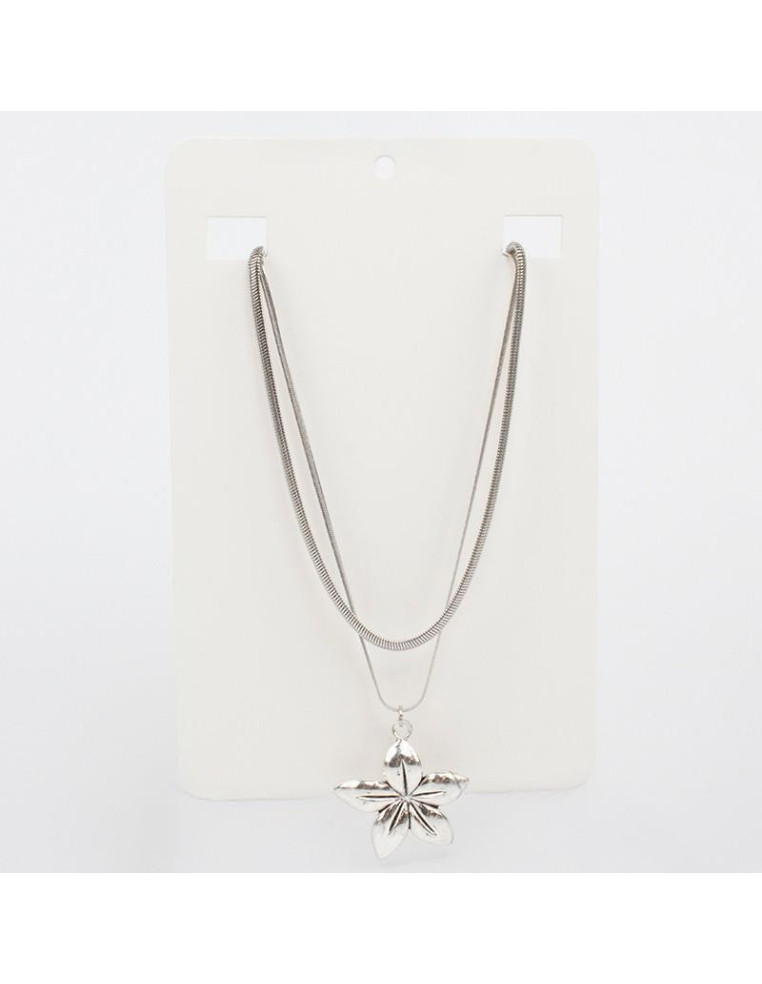 Collar de cadenas, con dije de fundición con forma de flor. Medidas: 37cm y 39cm de largo, ajustable con cadena de enganche de 10cm.