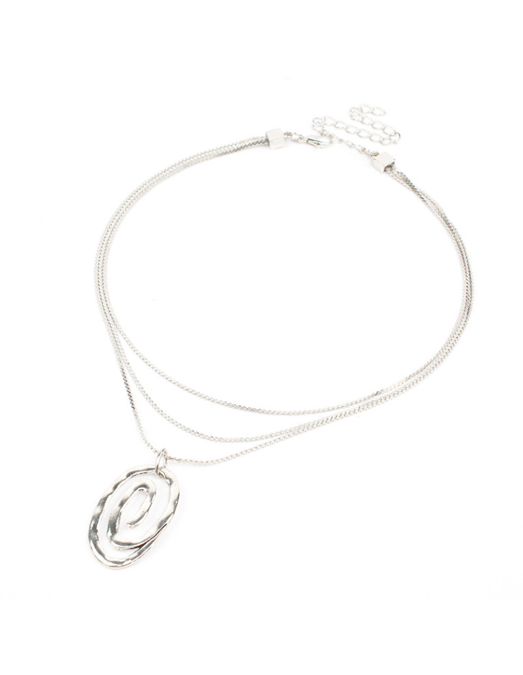 Collar de cadenas con dije de fundición de forma orgánica. Medidas: 37cm, 39cm y 41cm de largo, ajustable con cadena de enganche de 10cm.