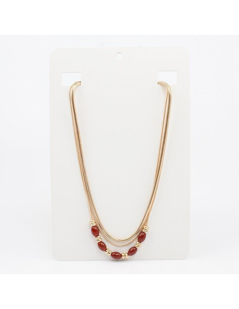 Collar de cadenas con cuentas de vidrio y pasantes de CCB dorados. Medidas: 37cm, 38cm y 39cm de largo, ajustable con cadena de enganche de 10cm.