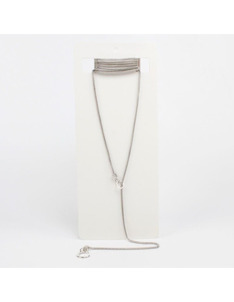Collar corbatero de múltiples vueltas de cadena, con dijes boho regulables.Medida: 140cm de largo.