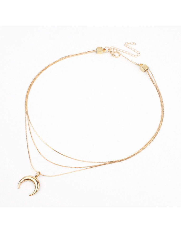 Collar de cadenas, con dije de fundición con forma de luna invertida. Medidas: 36cm, 37cm y 39cm de largo, ajustable con cadena de enganche de 10cm.