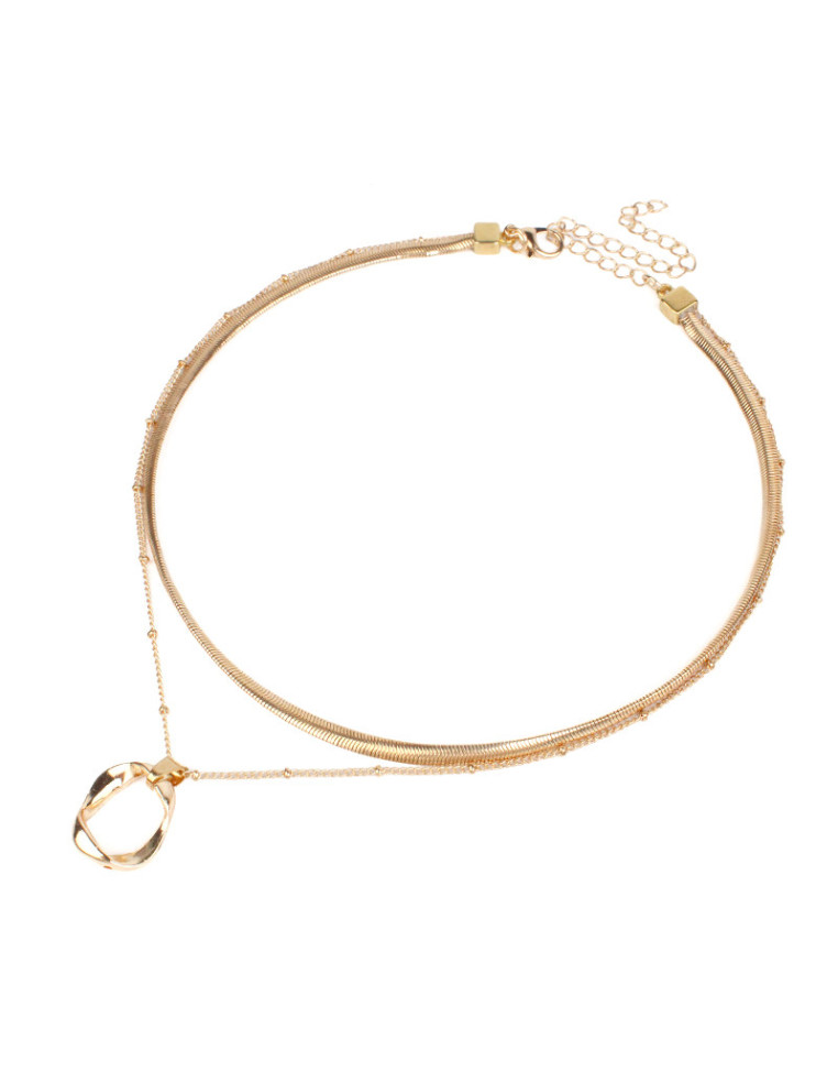 Collar de cadenas con dije dorado orgánico. Medidas: 37cm y 40cm de largo, ajustable con cadena de enganche de 10cm.