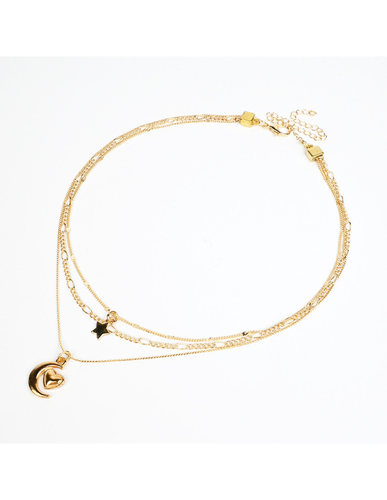 Collar de triple cadena, con dijes de fundición dorados.Medidas: 37cm, 39cm y 41cm de largo, ajustable con cadena de enganche de 10cm.