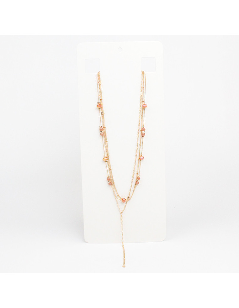 Collar de triple cadenas, con rocas de cristal, bolitas de vidrio y pasantes de CCB dorados.