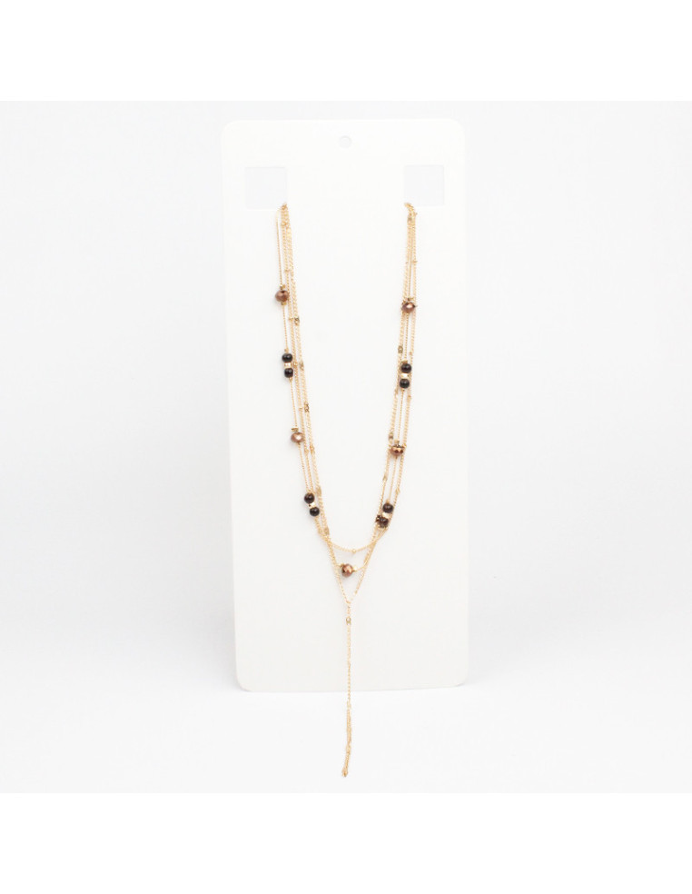Collar de triple cadenas, con rocas de cristal, bolitas de vidrio y pasantes de CCB dorados.