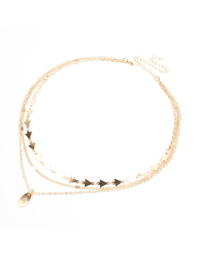 Collar de triple cadenas, con eslabones de diseño y medalla.