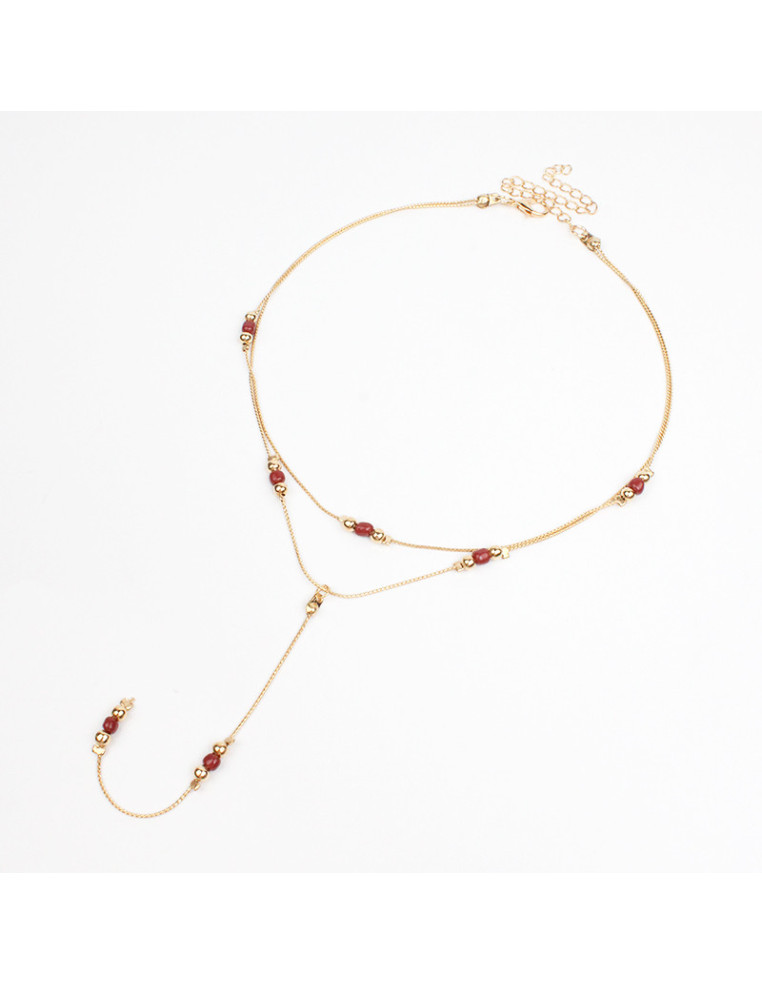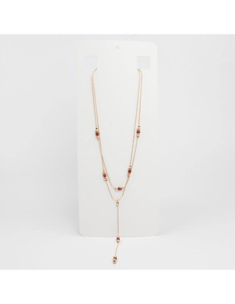Collar corbatero de cadena con mostacillas y pasantes de CCB dorados.