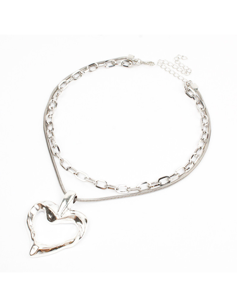 Collar de doble cadenas con dije de fundición con forma de corazón.