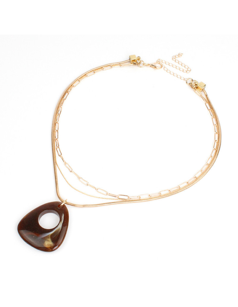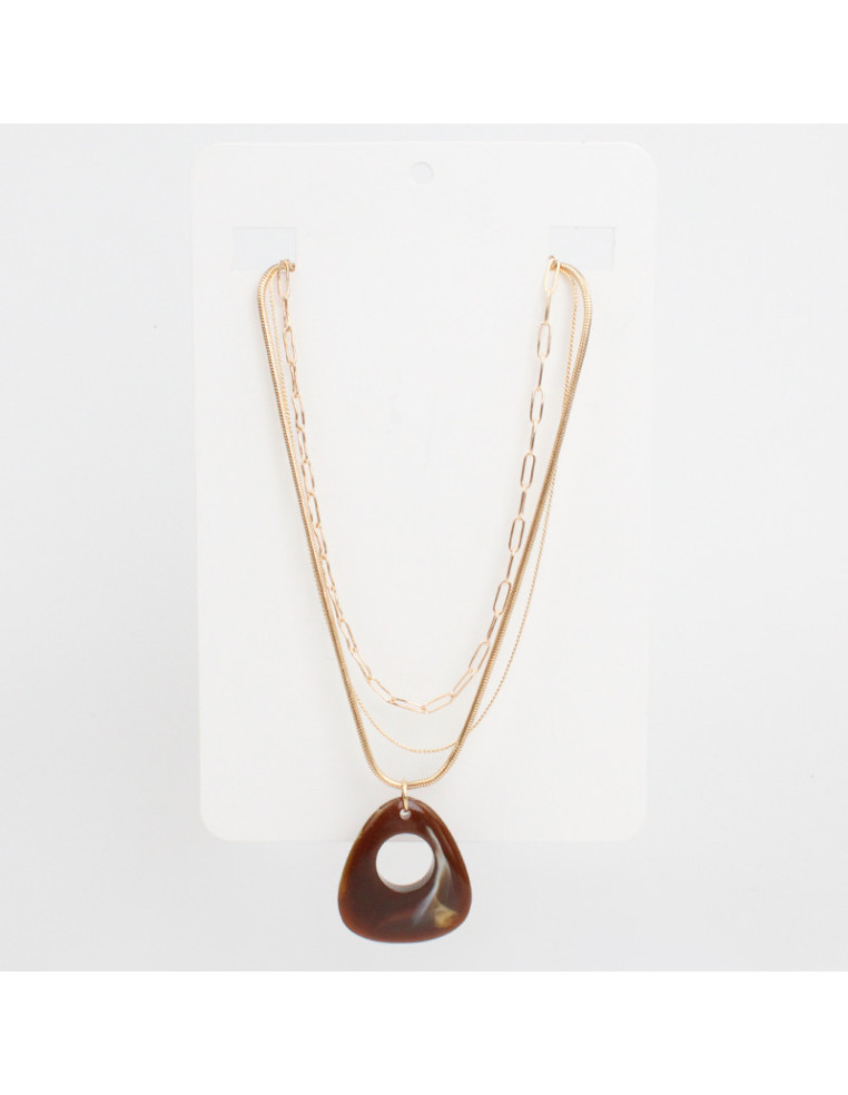 Collar con triple caída de cadenas diferenciadas intervenida con dije exclusivo de acrílico.
