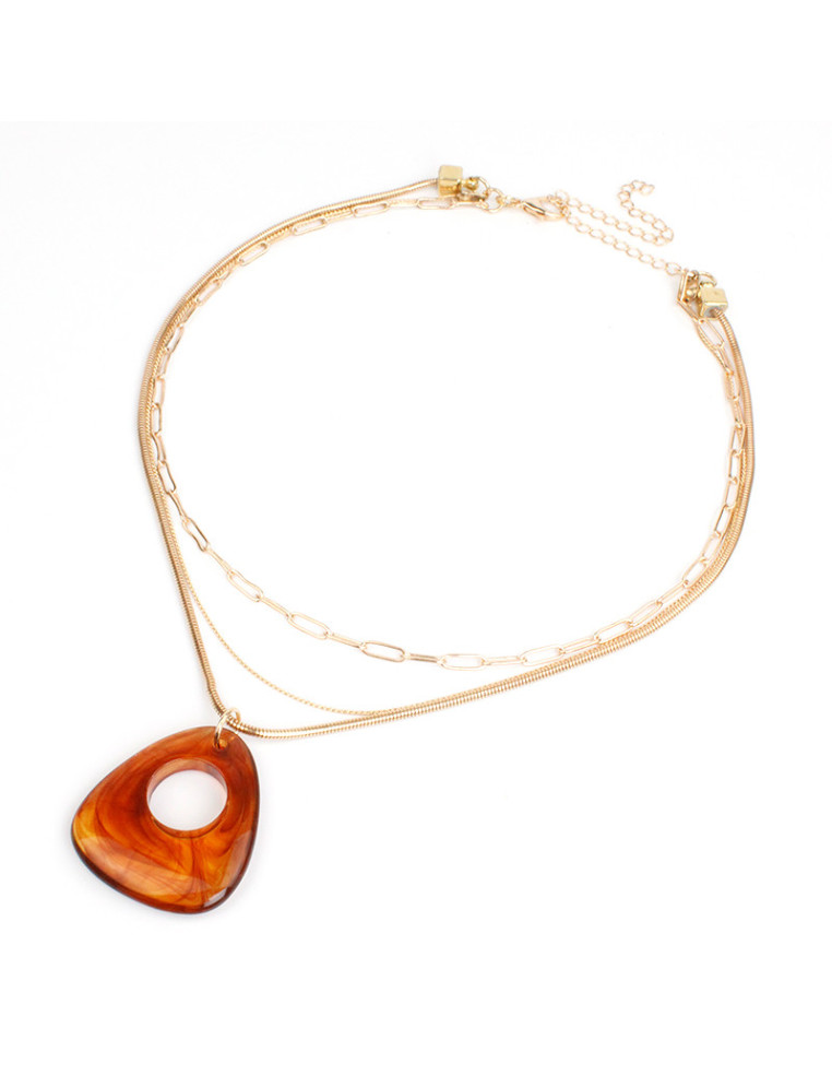 Collar con triple caída de cadenas diferenciadas intervenida con dije exclusivo de acrílico.Medida del collar 35,36, 37 cm más largo ajustable con cadena de enganche de 10cm.