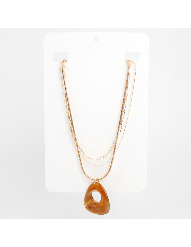 Collar con triple caída de cadenas diferenciadas intervenida con dije exclusivo de acrílico.