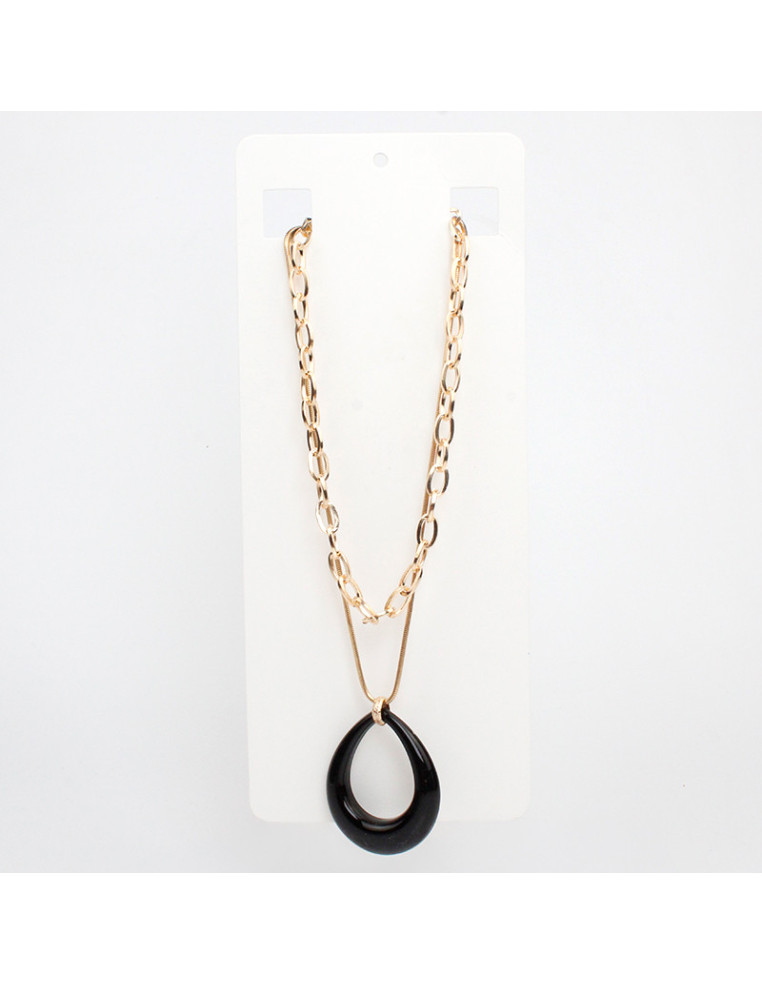Collar de doble caída de cadenas diferenciadas intervenida con dije exclusivo de acrílico.