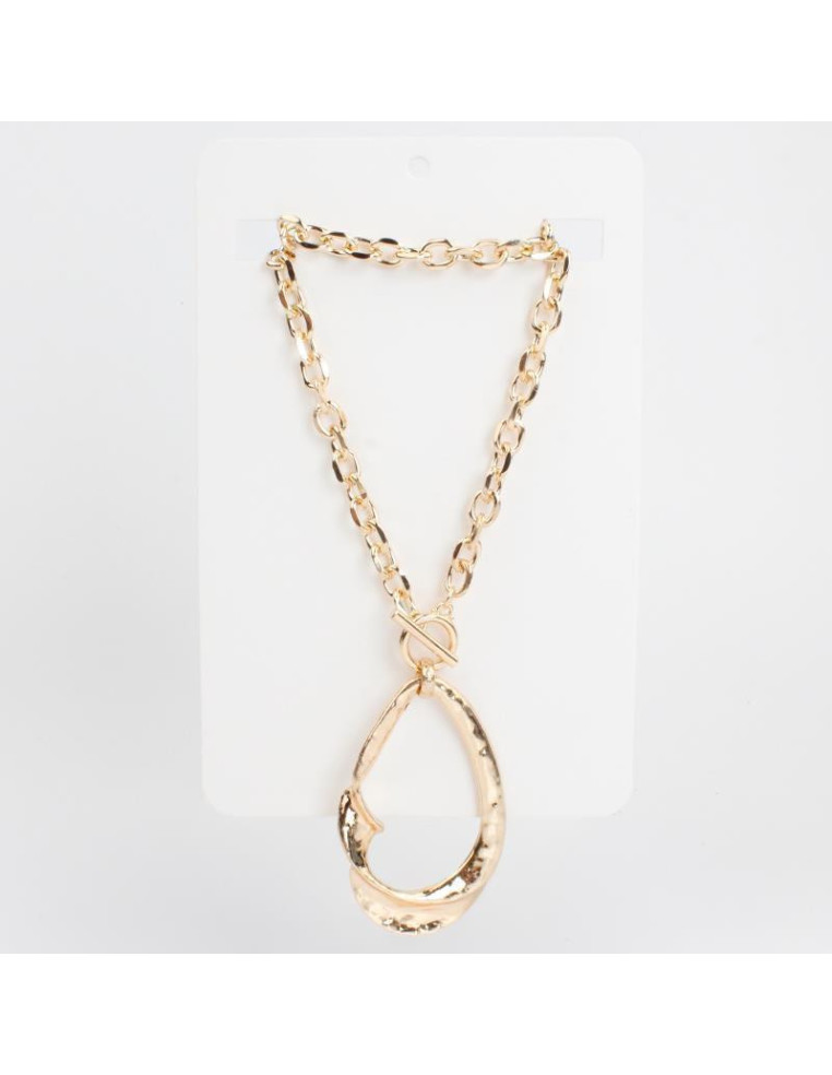 Collar largo de cadena con dije en forma orgánica diferenciada.